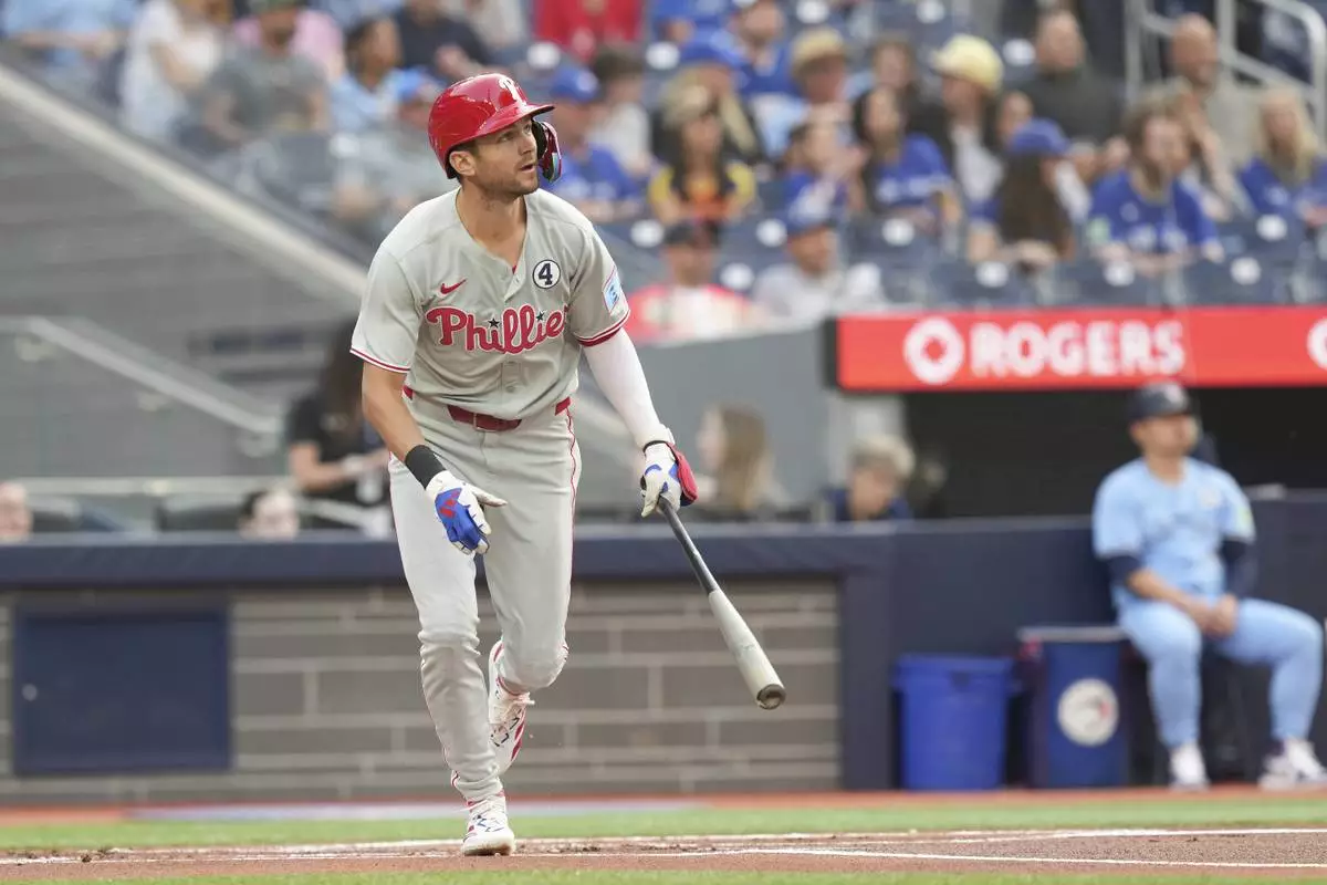 TORONTO (AP) — Bryce Harper homered in his first at-bat following a five-game absence, Trea Turner went deep twice and the Philadelphia Phillies scored six runs in the first inning Tuesday night on the way to an 8-3 victory over the Toronto Blue Jays that ended a four-game skid.