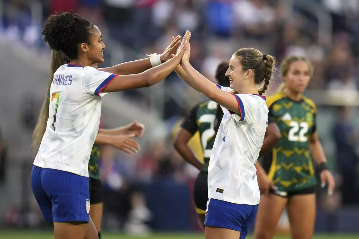 Jamaica, which has never beaten the U.S, started two sets of sisters — Allyson and Chantelle Swaby, and Kalyssa and Amelia Van Zanten.
