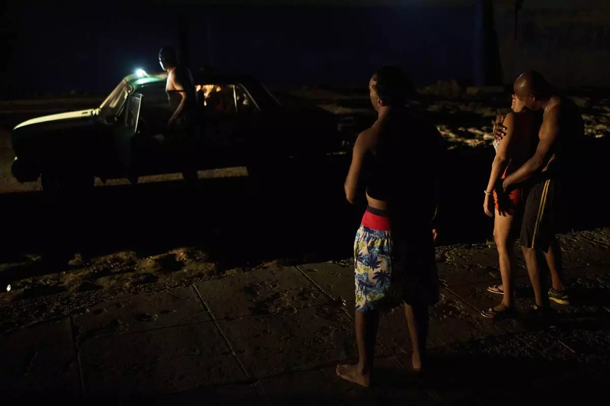 People pass the time in the street during a blackout in Havana, Cuba, Wednesday, May 28, 2025. (AP Photo/Ramon Espinosa)