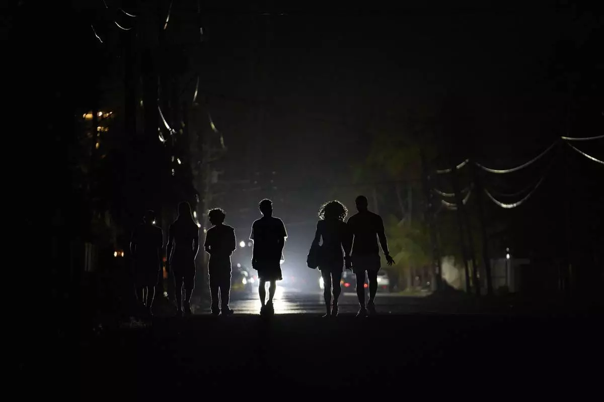 People walk in the dark during a blackout in Havana, Cuba, Wednesday, May 28, 2025. (AP Photo/Ramon Espinosa)