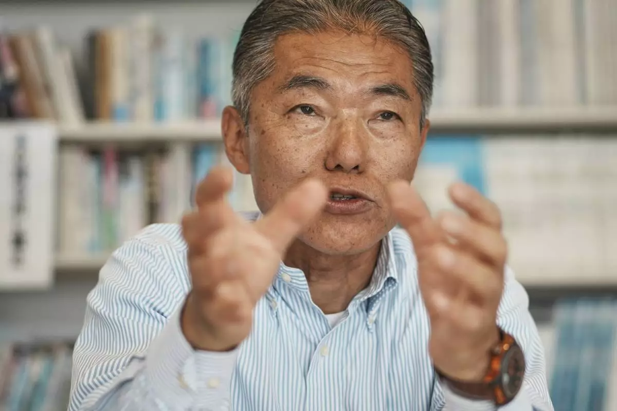 Masashi Funabara, a retired city hall employee and a "hidden" Christian speaks during an interview in the Ikitsuki Island Museum "Shima no Yakata" at Ikitsuki Island in Hirado, southern Japan, Sunday, April 27, 2025. (AP Photo/Eugene Hoshiko)