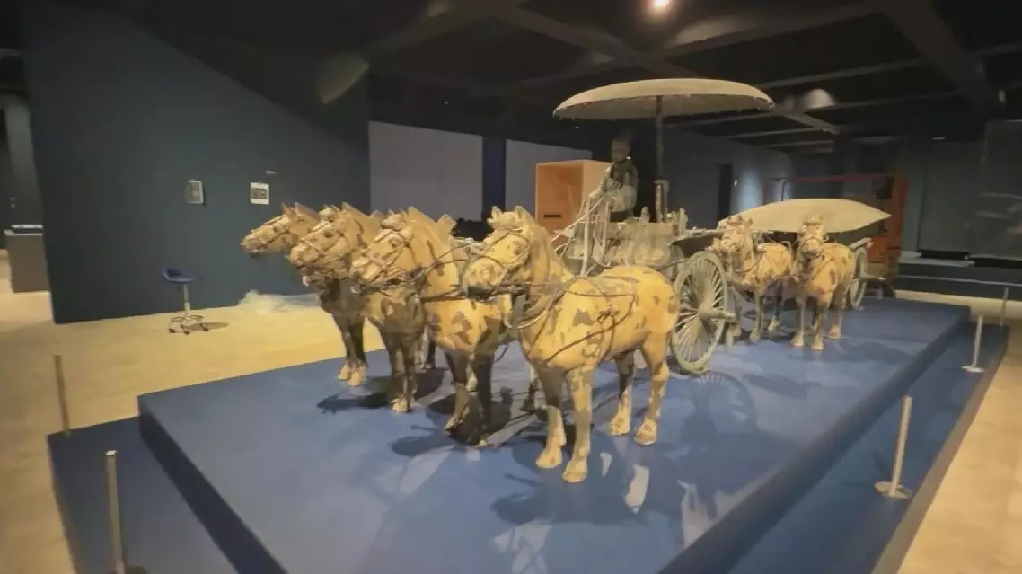 "The archaeological exhibition involves the Terracotta Warriors Museum, or the (Archaeological Mausoleum) Site Museum, as well as other places in the whole province, continuing almost every day. What we're doing here is to showcase some of the most exciting new discoveries over the past two decades," said Jiao Tianlong, chief curator of Bowers Museum. "The No. 1 and No. 2 sets of bronze chariots and horses are the largest, most complex structure, and most complete harness system bronze chariot and horse artifacts discovered to date, and are hailed as the 'Crown of Bronze'. These were also the most challenging exhibits to install. To ensure their safety during transport, all detachable parts were individually packaged and reassembled in the exhibition hall. The reassembly of these two chariot and horse replicas took a total of five days," said a staff member from the Emperor Qinshihuang's Mausoleum Site Museum in China.