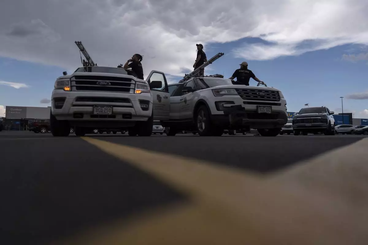 Members of the University of Colorado Boulder's Integrated Remote and In-Situ Sensing flight team stage in a Walmart parking lot before a Project ICECHIP operation Tuesday, June 3, 2025, in Atlus, Okla. (AP Photo/Carolyn Kaster)
