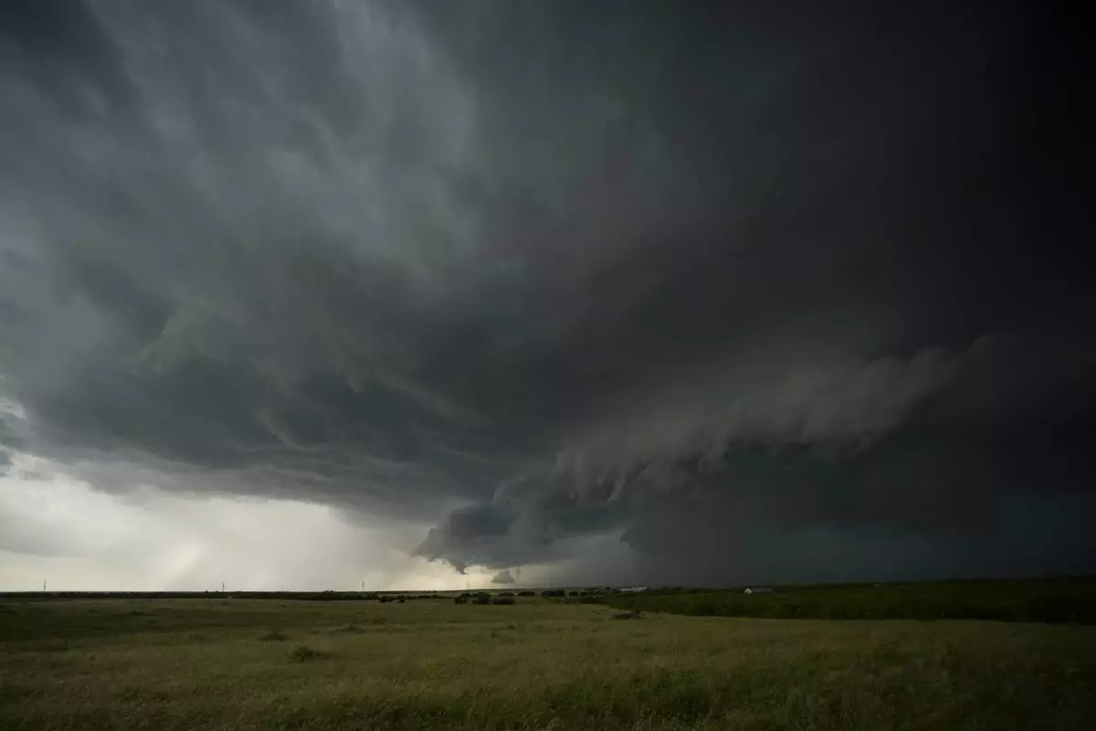 An approaching storm with a shelf cloud and rain shaft is visible during a Project ICECHIP operation on Tuesday, June 3, 2025, in Scotland, Texas. (AP Photo/Carolyn Kaster)
