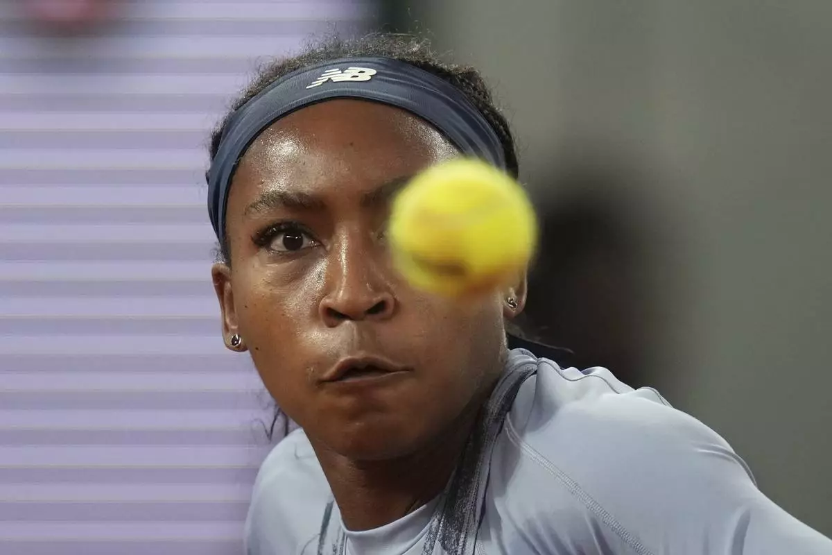 Coco Gauff of the U.S. plays a shot against Madison Keys of the U.S. during their quarterfinal match of the French Tennis Open at the Roland-Garros stadium in Paris, Wednesday, June 4, 2025. (AP Photo/Christophe Ena)