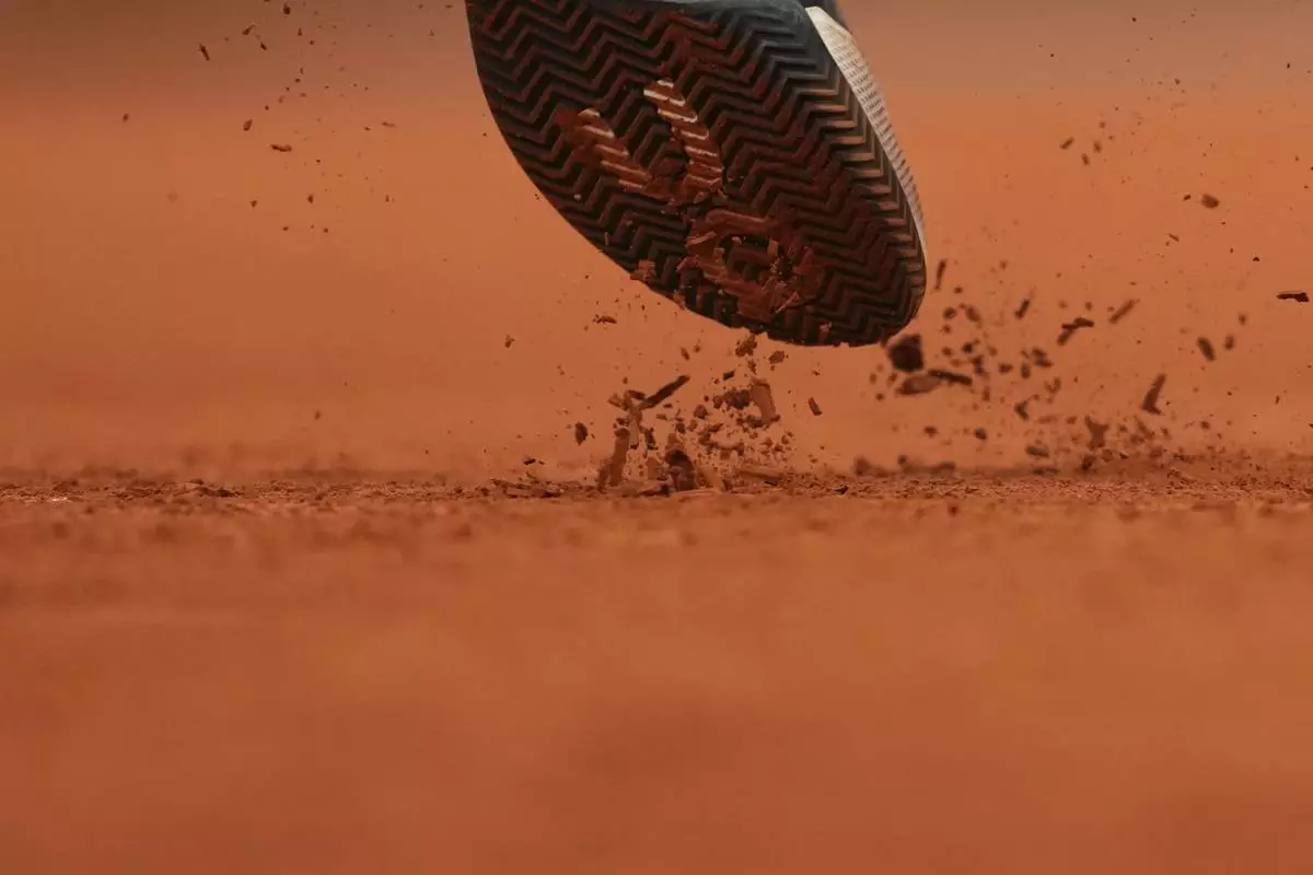 Kazakhstan's Alexander Bublik kicks the clay as he serves against Italy's Jannik Sinner during their quarterfinal match of the French Tennis Open at the Roland-Garros stadium in Paris, Wednesday, June 4, 2025. (AP Photo/Lindsey Wasson)