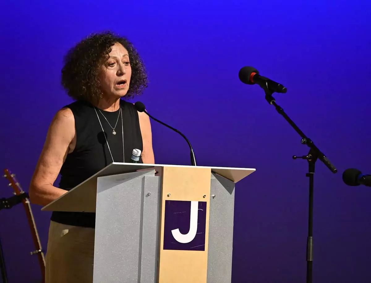 Rachelle Halpern, a witness to last Sunday's attack in Boulder, speaks during a vigil at the Boulder Jewish Community Center Wednesday, June 4, 2025, in Boulder, Colo. (Andy Cross/The Denver Post via AP, Pool)
