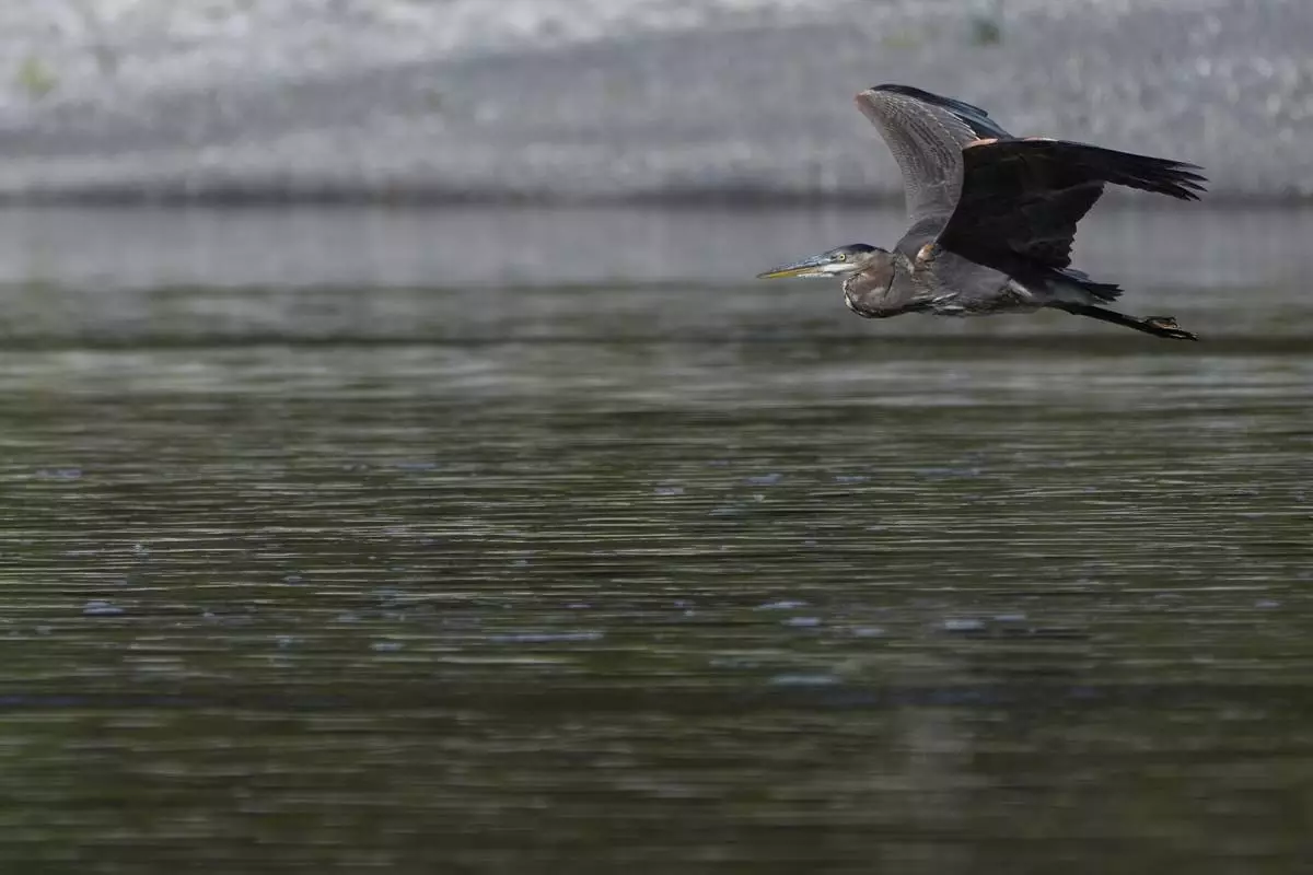 A great blue heron flies above the Klamath River, Thursday, Sept. 19, 2024, in Humboldt County, Calif. (AP Photo/Godofredo A. Vásquez)