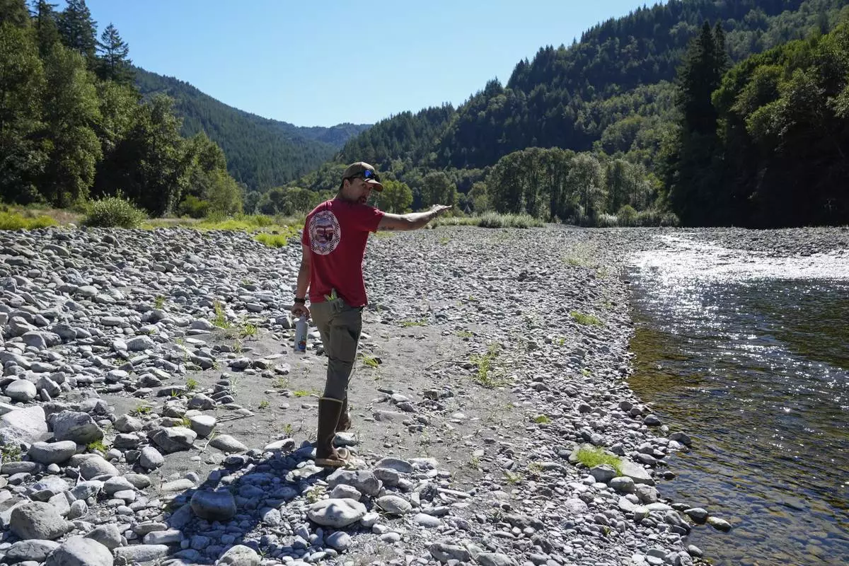 Logan McKinnon, a member of the Yurok Tribe who is involved in the restoration implementation, walks along Blue Creek, Thursday, Sept. 19, 2024, in Humboldt County, Calif. (AP Photo/Godofredo A. Vásquez)