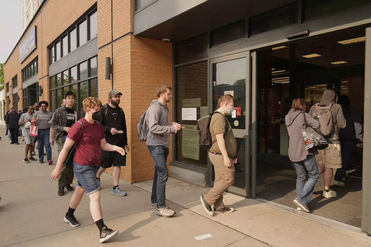 People line up outside a Target store for the new Nintendo Switch 2 video game consoles on Thursday, June 5, 2025 in Chicago. (AP Photo/Kiichiro Sato)