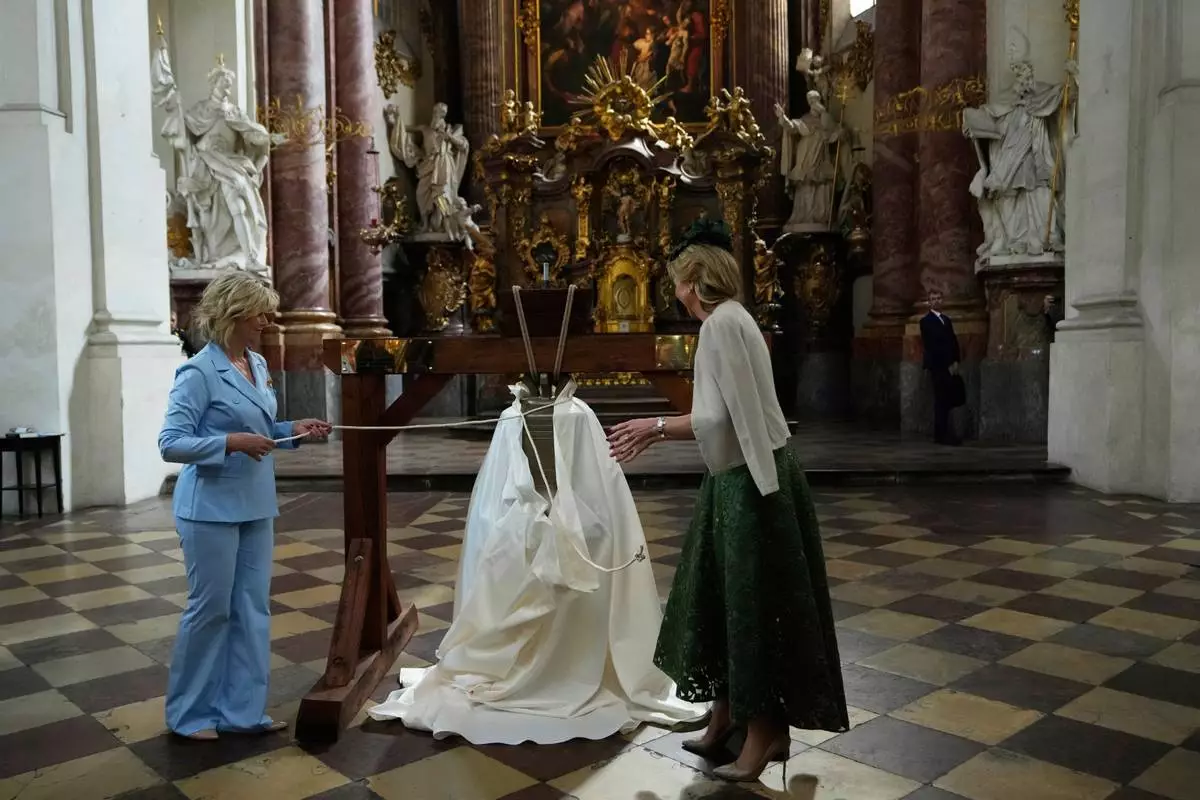 PRAGUE (AP) — Queen Maxima of the Netherlands handed over a bell made partly from Russian weapons to a church in the Czech Republic on Thursday in a sign of solidarity with Ukraine.