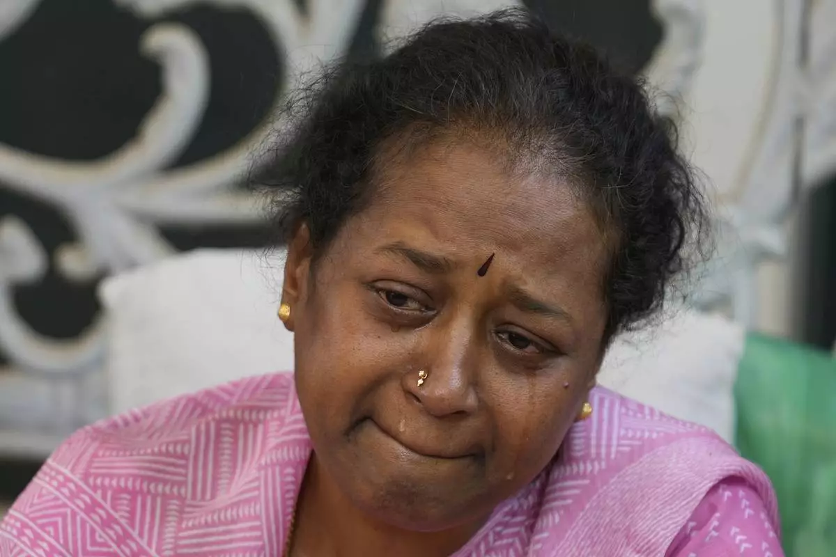 A woman cries next to the body of 14-year-old Divyanshi Shivakumar, who lost her life in Wednesday's deadly stampede during celebrations outside a stadium for Royal Challengers Bengaluru, winners of the Indian Premier League, at her residence ahead of her last rites in Bengaluru, India, Thursday, June 5, 2025. (AP Photo/Aijaz Rahi)