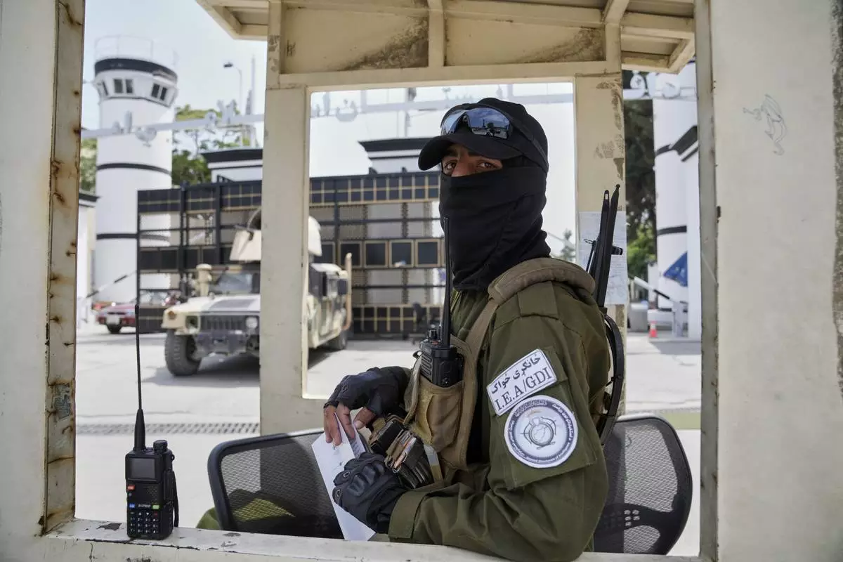 Outside the former U.S. Embassy in Kabul, Afghanistan, a Taliban guard expressed his disappointment with the ban.