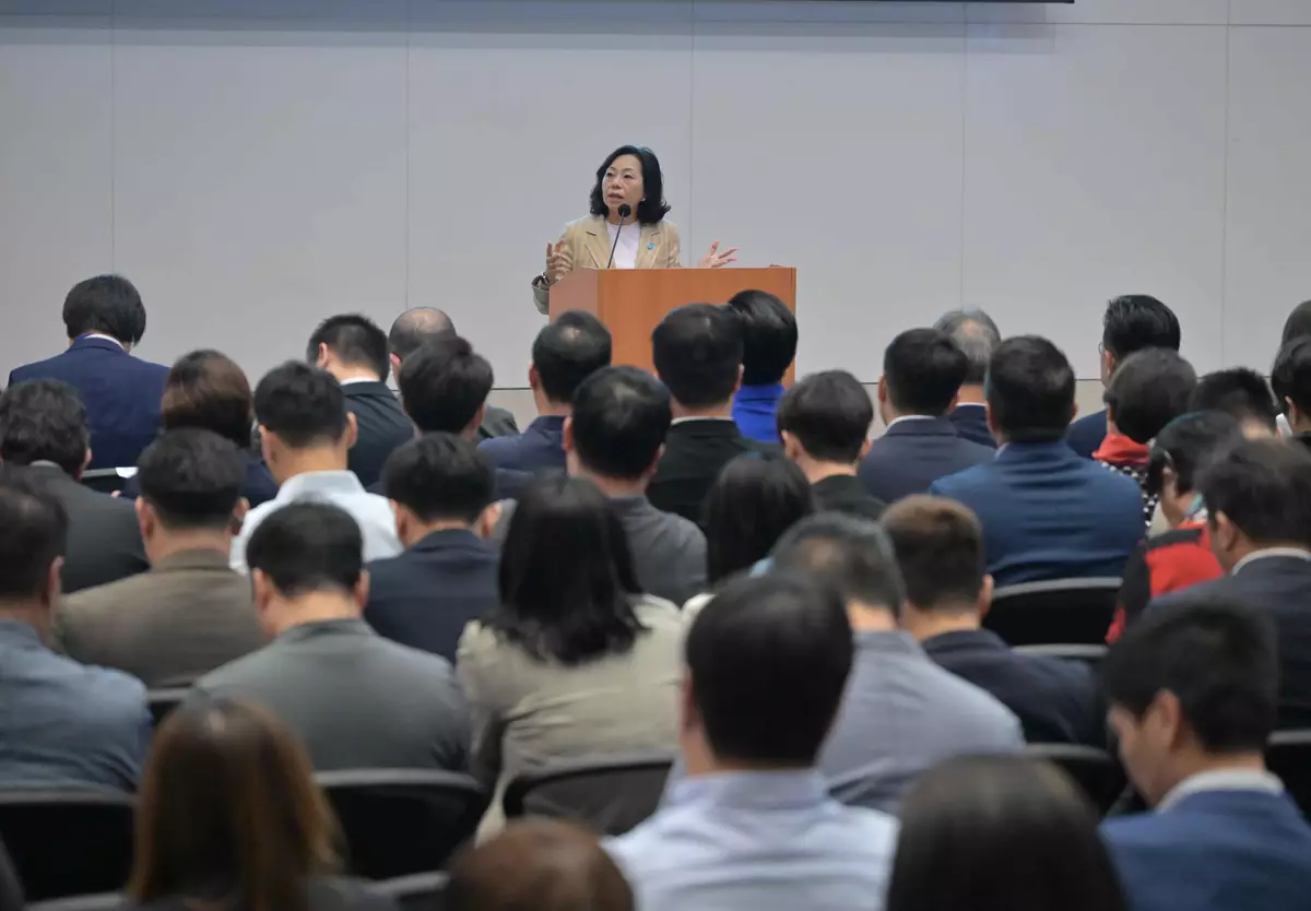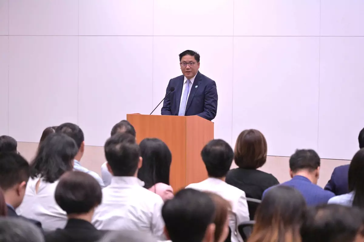 Before the second part of the training seminar, the Secretary for Home and Youth Affairs, Miss Alice Mak, addressed DC members, saying that the Government had always placed emphasis on district work. She quoted the Director of the Liaison Office of the Central People's Government in the Hong Kong Special Administrative Region, Mr Zhou Ji, that the DCs, "the three district committees" (the Area Committees, the District Fight Crime Committees and the District Fire Safety Committees) and Care Teams are the troika after improvements to district governance, and reminded DC members to strengthen collaboration with "the three district committees" and Care Teams, and address and resolve people's conflicts at early stages. Miss Mak emphasised that building management was one of the key aspects of district work, and encouraged DC members to be familiar with relevant legislation, so as to provide support and assistance to owners and residents in need and facilitate the smooth operation of building management.