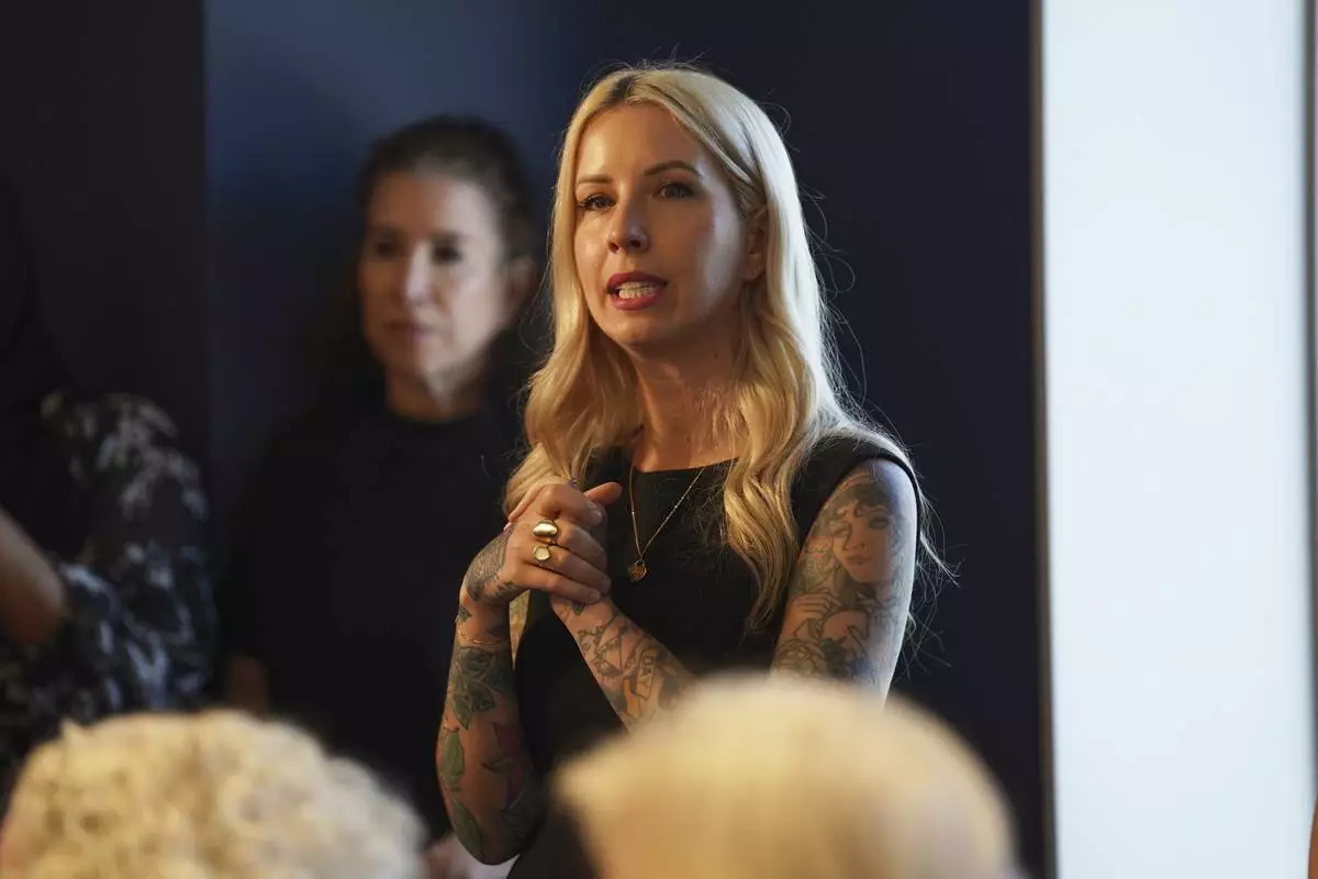 Hannah Shaw, kitten rescuer and advocate / founder of Kitten Lady speaks on Wednesday, June 4, 2025, at the Associated Press bureau in New York. (AP Photo/Mary Conlon)