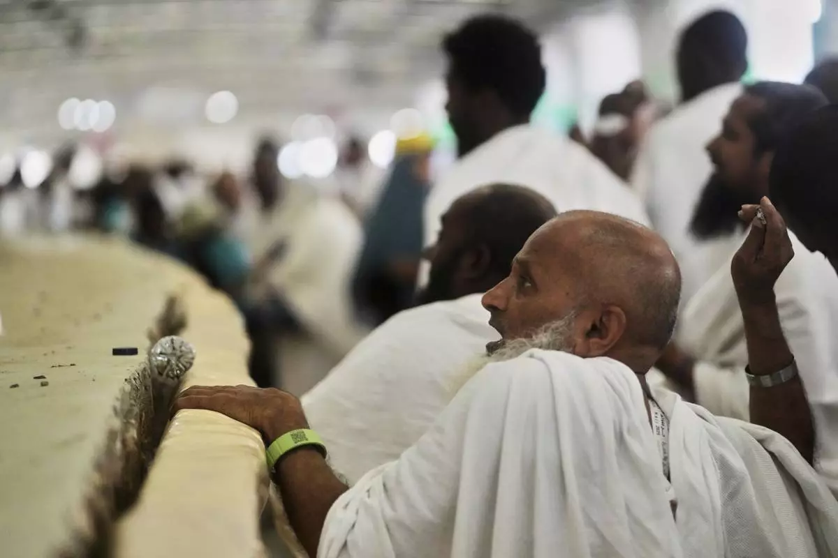 An Afghan Muslim pilgrim, looks on as he prepares to enter the Grand Mosque, during the annual Hajj pilgrimage in Mecca, Saudi Arabia, Monday, June 2, 2025. (AP Photo/Amr Nabi)