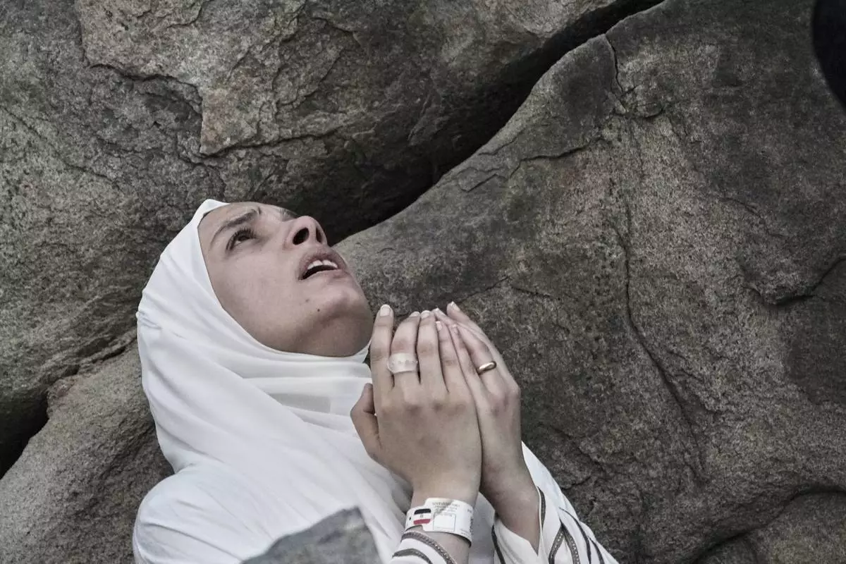A Muslim pilgrim prays during the annual Hajj pilgrimage on the Plain of Arafat, near the holy city of Mecca, Saudi Arabia, Thursday, June 5, 2025. (AP Photo/Amr Nabil)