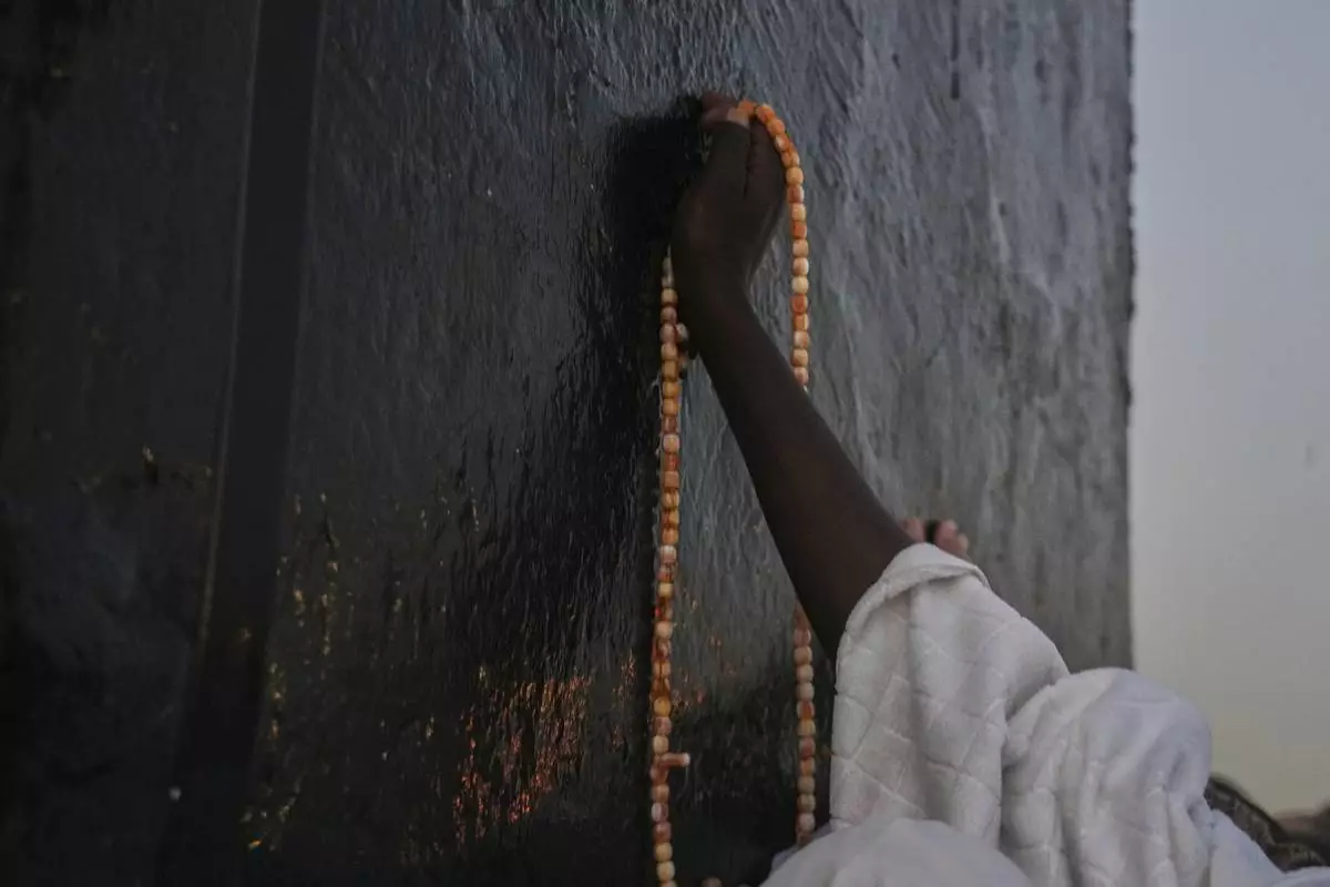Muslim pilgrims stand in front the Kaaba, the cubic building at the Grand Mosque, during the annual Hajj pilgrimage, in Mecca, Saudi Arabia, Tuesday, June 3, 2025. (AP Photo/Amr Nabil)