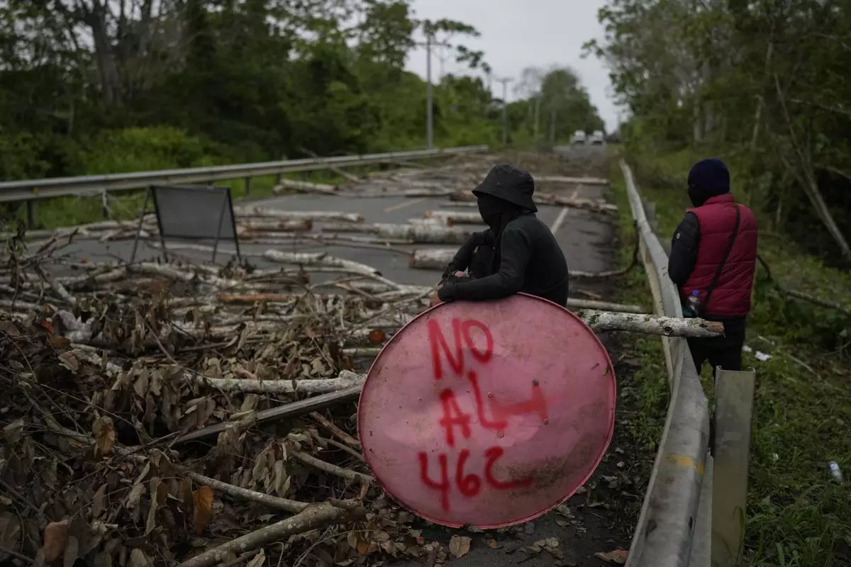 Anti-government protesters block a highway in the Indigenous Embera community of Arimae, Panama, Thursday, June 5, 2025, during a demonstration against a pension reform law and a security agreement with the United States involving the Panama Canal.(AP Photo/Matias Delacroix)