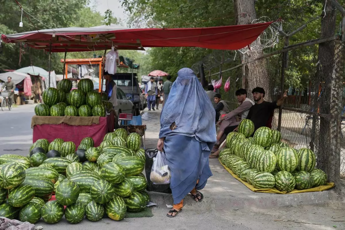 A woman shops in a market in Kabul, Afghanistan, Thursday, June 5, 2025. (AP Photo/Ebrahim Noroozi)