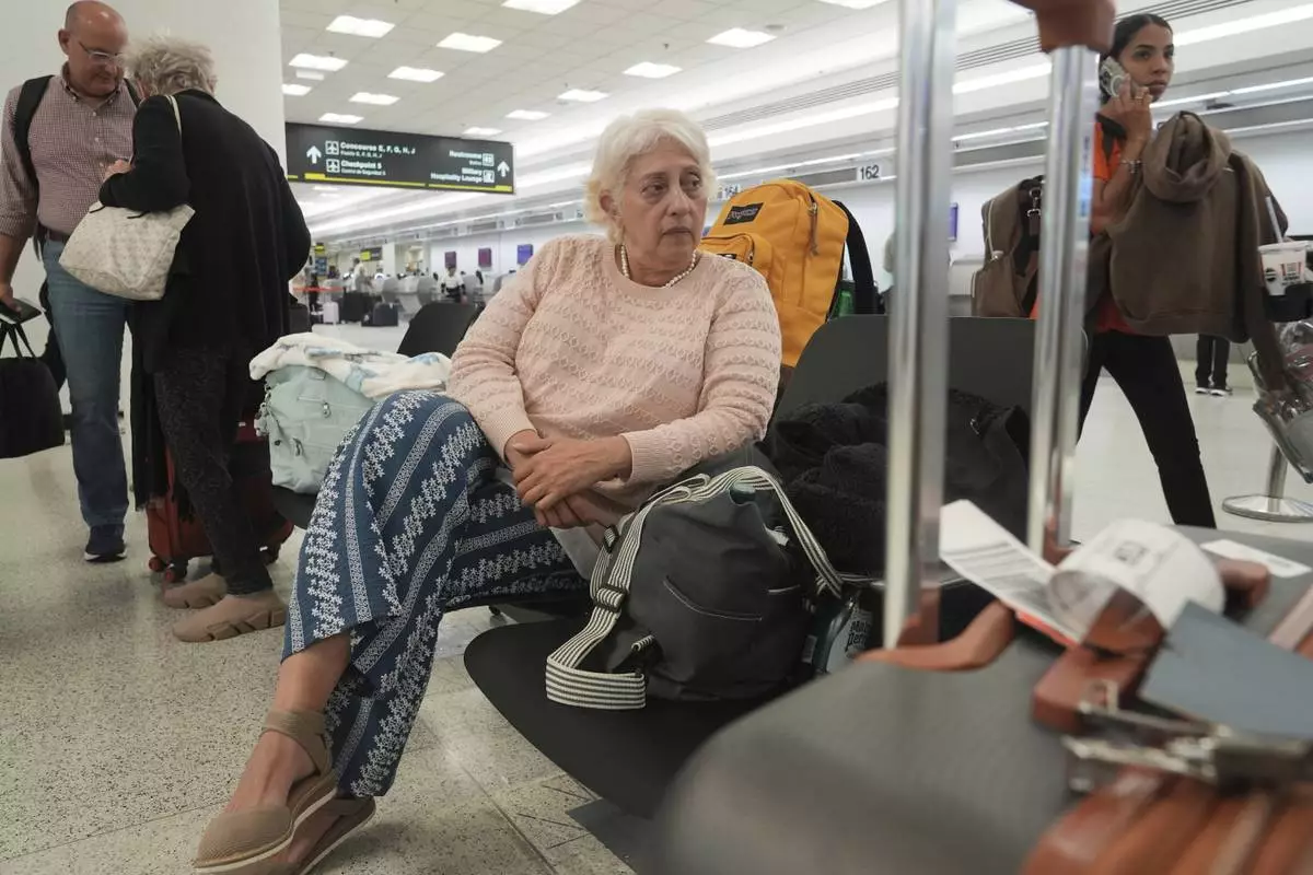 Mayra Cardenas waits for a friend before checking her bags on a flight back to Caracas, Venezuela, Thursday, June 5, 2025, at Miami International Airport. Cardenas was visiting her daughter in Orlando on a tourist visit. She fears she might not be able to see her family for many years. (AP Photo/Marta Lavandier)