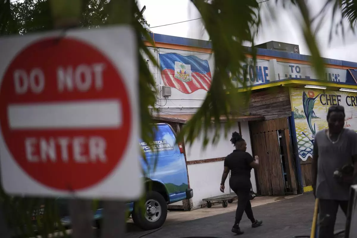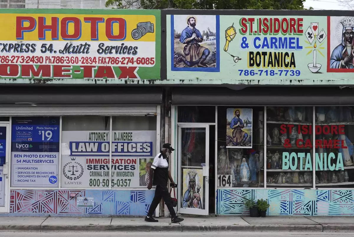 A man walks past businesses in Miami's Little Haiti neighborhood, Thursday, June 5, 2025. (AP Photo/Rebecca Blackwell)