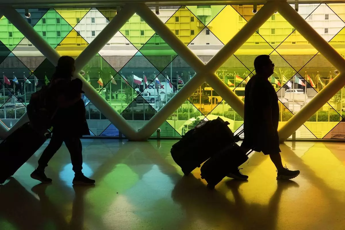 Travellers arrive at Miami International Airport, Thursday, June 5, 2025, in Miami, Fla. (AP Photo/Marta Lavandier)