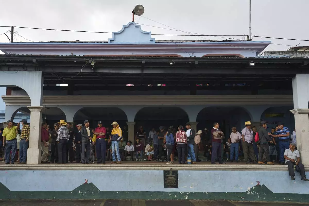 Families evacuated from the area surrounding the Fuego Volcano stand in a temporary shelter in San Juan Alotenango, Guatemala, Thursday, June 5, 2025, after the volcano erupted. (AP Photo/Moises Castillo)