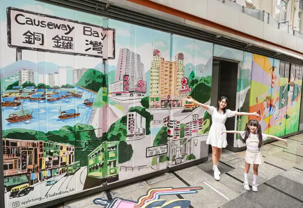Hearing-impaired artist Tong Wing-yin drew inspiration from the nostalgic streetscapes and transformation of Causeway Bay. Her mural, "Streets of Old Causeway Bay," features iconic landmarks such as the former Daimaru and Matsuzakaya department stores, honoring Hang Lung's significant role in shaping the district's fashion and cultural identity.