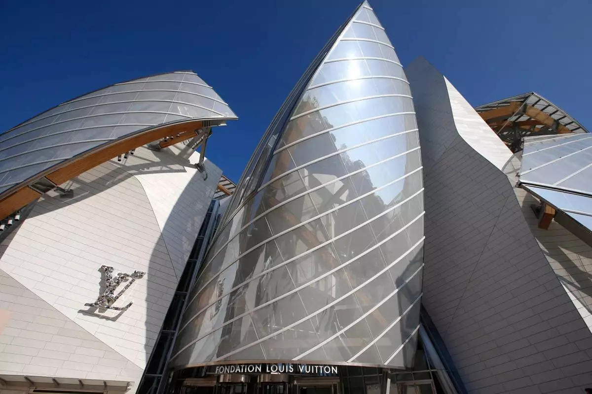 FILE - The Louis Vuitton Foundation building designed by American architect Frank Gehry is pictured before the presentation of Louis Vuitton's Spring/Summer 2015 ready-to-wear fashion collection in Paris, Wednesday, Oct. 1, 2014. (AP Photo/Francois Mori, File)