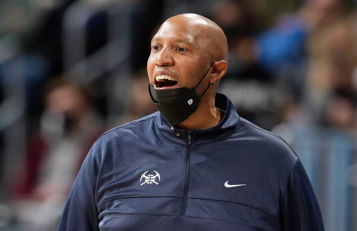 FILE - Then-Denver Nuggets interim head coach Popeye Jones directs his team against the Utah Jazz in the first half of an NBA basketball game Wednesday, Jan. 5, 2022, in Denver. (AP Photo/David Zalubowski, File)