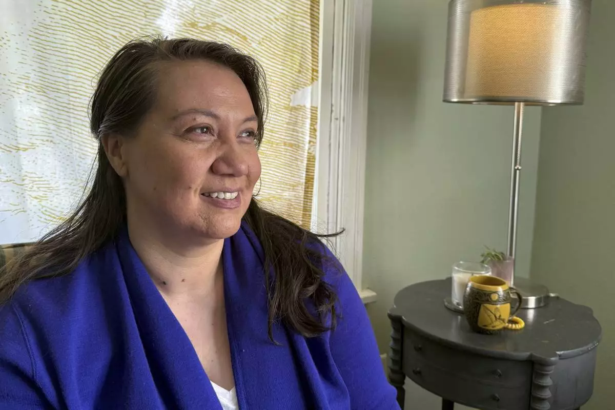 Siniva Bennett, board chair of the Samoa Pacific Development Corporation, sits in her home in Portland, Ore., Monday, May 19, 2025. (AP Photo/Claire Rush)