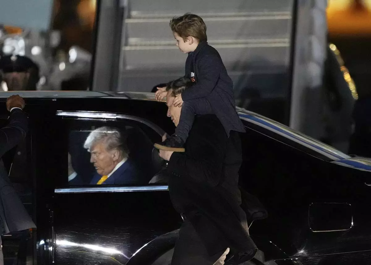 FILE - Elon Musk carries his son X Æ A-Xii as they arrives on Air Force One with President Donald Trump, left, at Miami International Airport, April 12, 2025, in Miami, Fla. (AP Photo/Manuel Balce Ceneta, File)