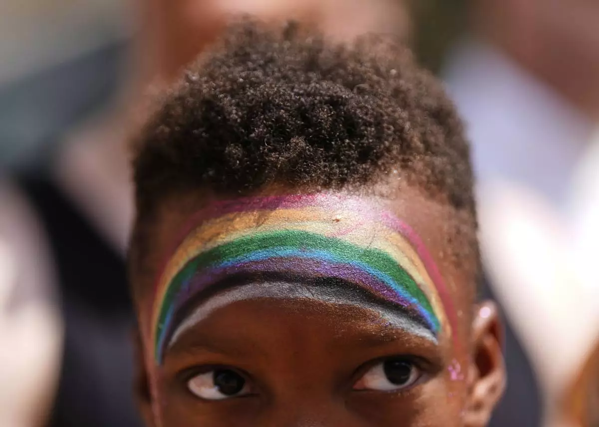 A child watches the World Pride parade, Saturday, June 7, 2025, in Washington. (AP Photo/Julia Demaree Nikhinson)