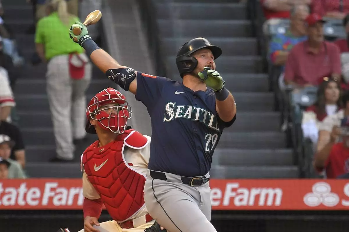 The Angels took advantage of two Mariners errors to score twice in the third to tie the score 4-4, and Adell’s 445-foot homer to center put them ahead 5-4 in the fourth.