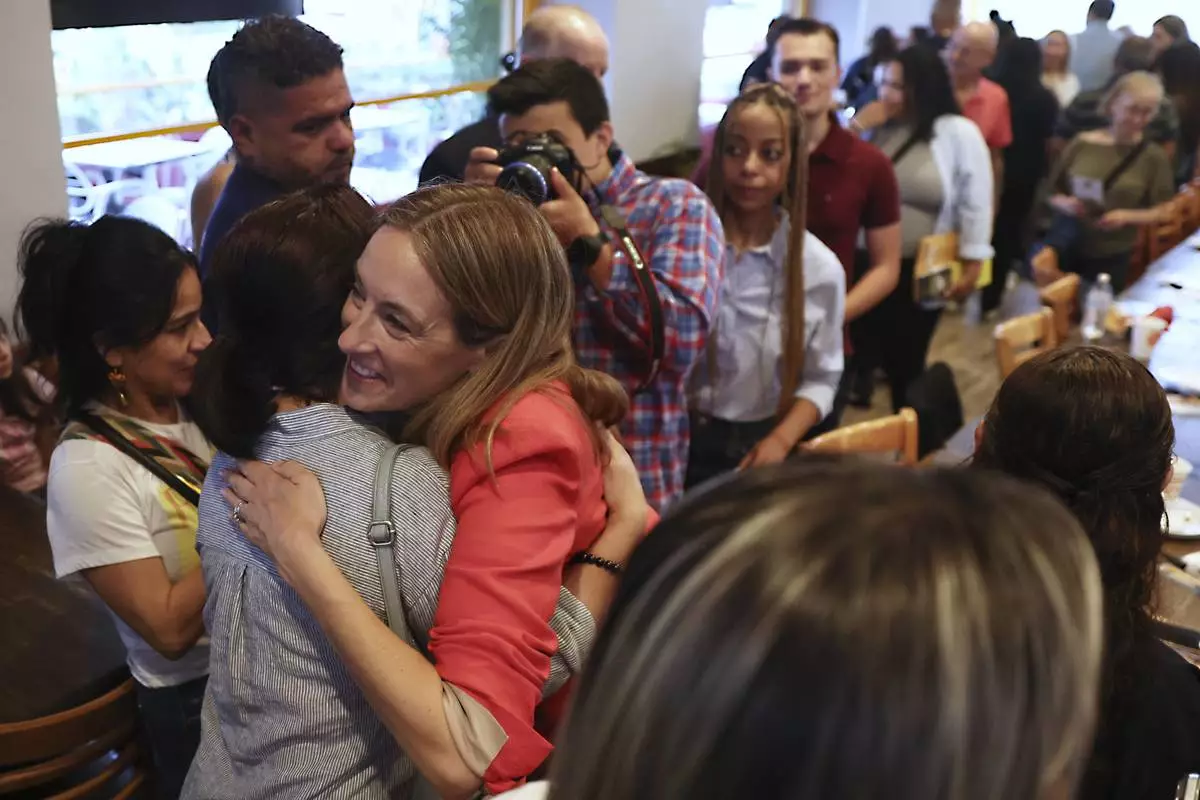 Rep. Mikie Sherrill, D-N.J., greets people during a "Get Out the Vote" rally, Saturday, June 7, 2025, in Elizabeth, N.J. (AP Photo/Heather Khalifa)