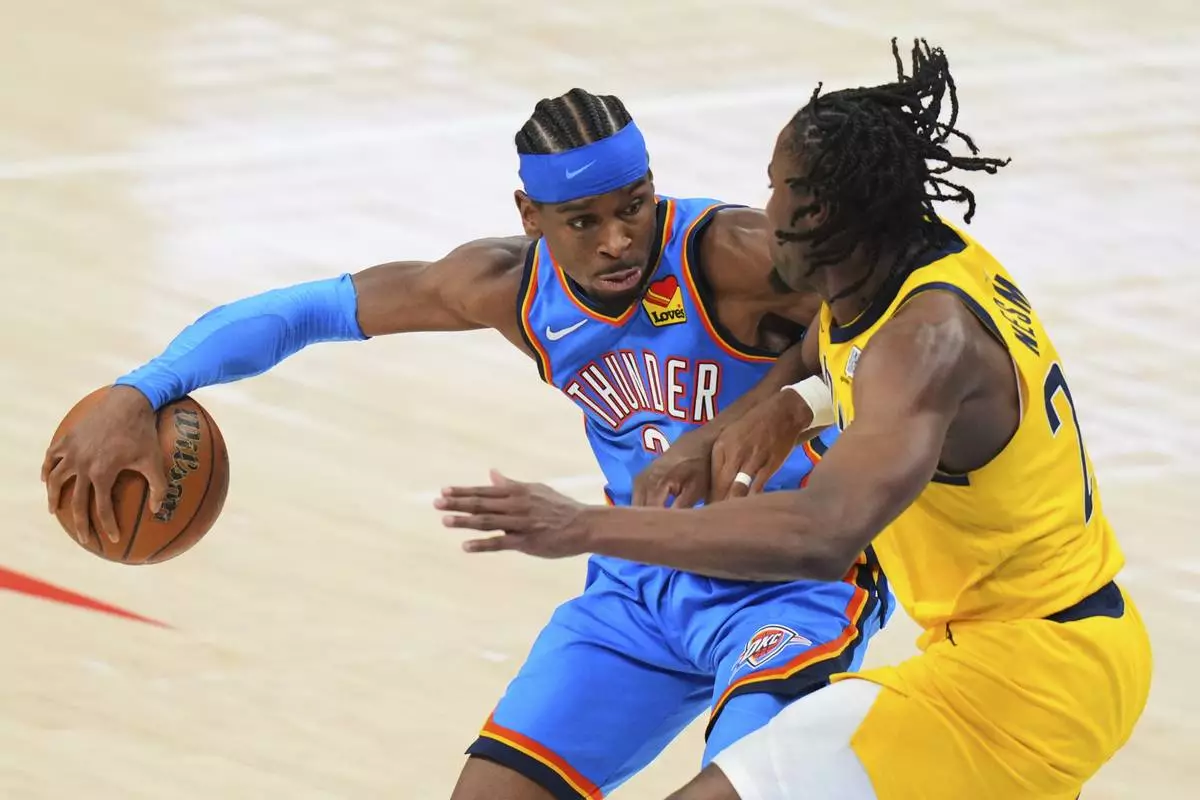 Shai Gilgeous-Alexander scored 34 points, Alex Caruso added 20 off the bench and the Thunder beat the Indiana Pacers 123-107 on Sunday night to tie these finals at one game apiece.