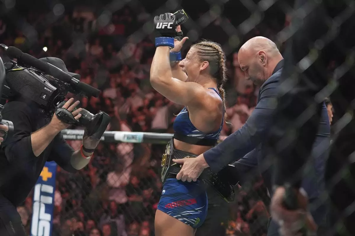 Her biggest reward, in an adulthood full of professional triumphs, came Saturday night at UFC 316 at the Prudential Center when she made 135-pound champion Julianna Peña quit late in the second round to win a championship in only her third UFC fight.