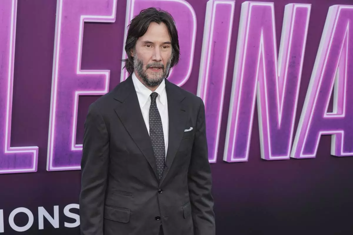 Keanu Reeves arrives at the premiere of "Ballerina" on Tuesday, June 3, 2025, at TCL Chinese Theatre in Los Angeles. (AP Photo/Chris Pizzello)