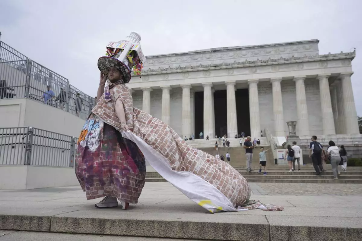 “Trans people just want to be loved. Everybody wants to live their own lives and I don't understand the problem with it all,” said Tyler Cargill, who came wearing an elaborate costume with a hat topped by a replica of the U.S. Capitol building.