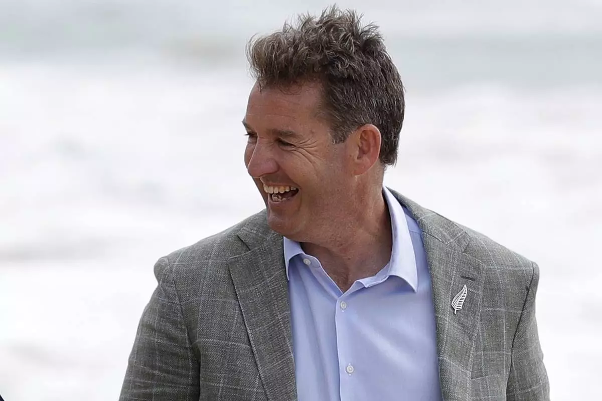 FILE - New Zealand Rugby Chief Executive Mark Robinson smiles on Manly Beach in Sydney, Friday, Nov. 13, 2020. (AP Photo/Rick Rycroft, File)