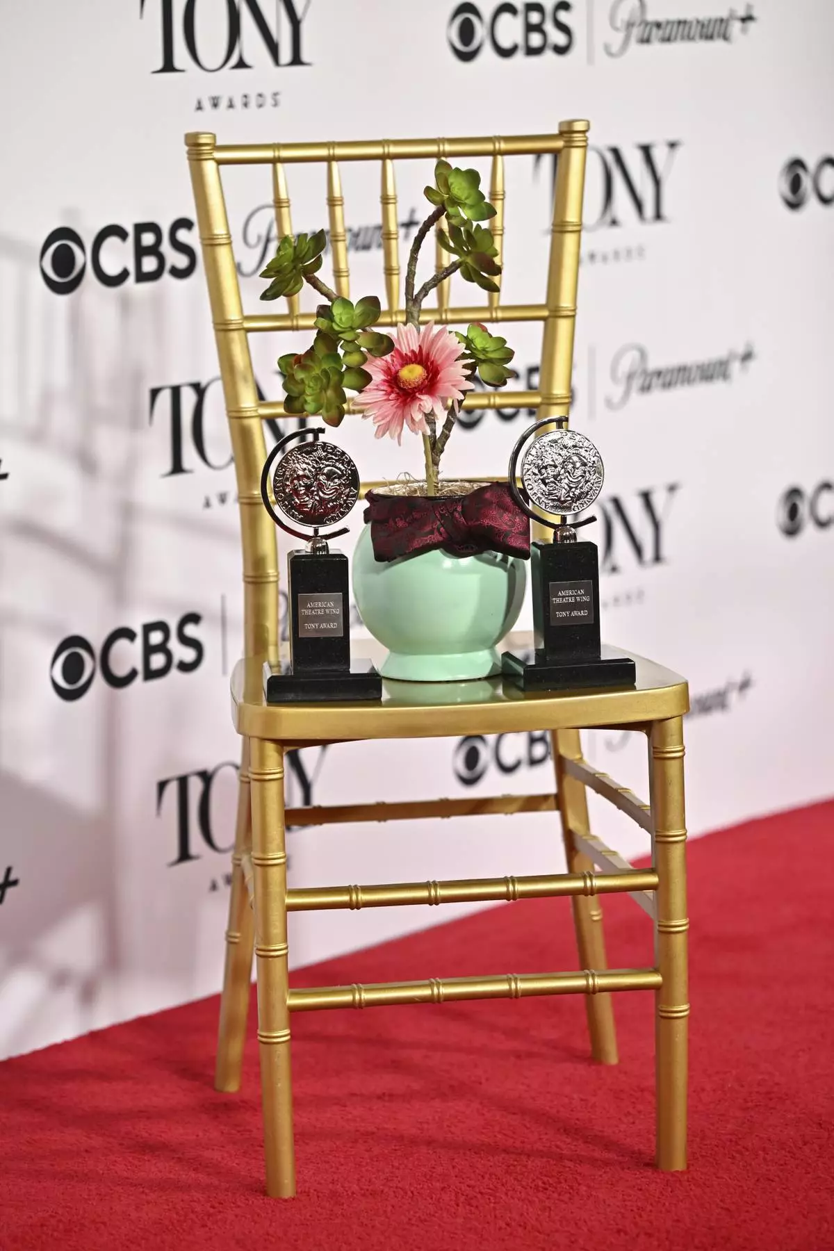 Hwaboon the plant from "Maybe Happy Ending" appears in the press room with the awards for best original score and best book of a musical during the 78th Tony Awards on Sunday, June 8, 2025, at Radio City Music Hall in New York. (Photo by Evan Agostini/Invision/AP)