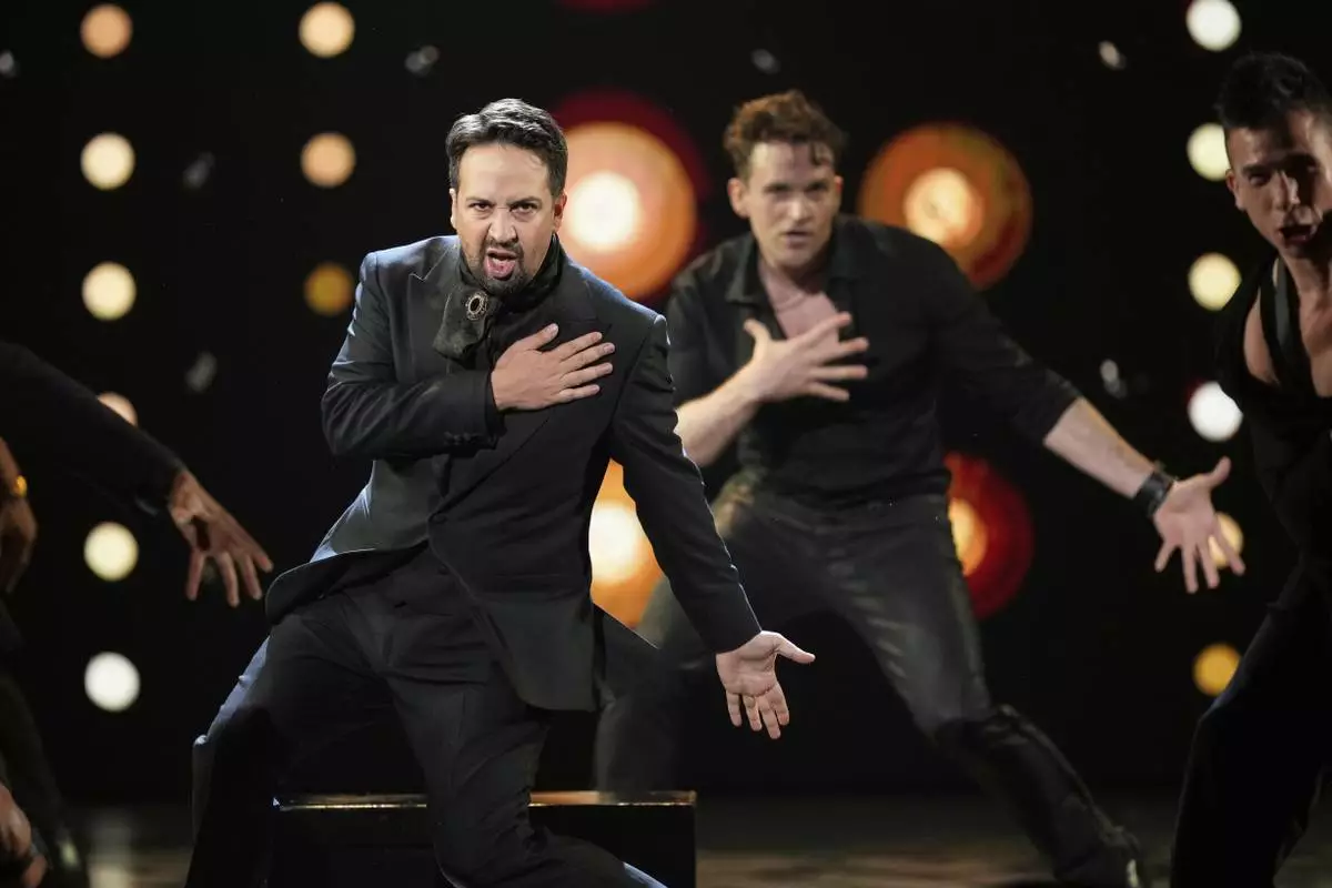 Lin-Manuel Miranda performs a medley from "Hamilton" during the 78th Tony Awards on Sunday, June 8, 2025, at Radio City Music Hall in New York. (Photo by Charles Sykes/Invision/AP)