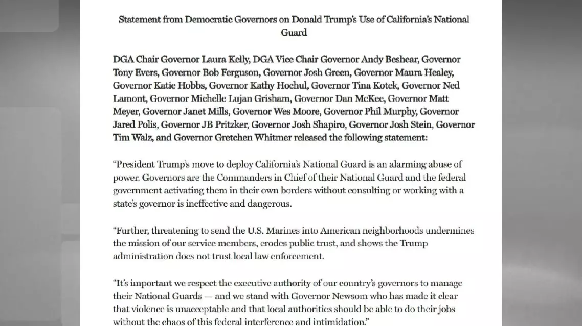 "President Trump's move to deploy California's National Guard is an alarming abuse of power," said a joint statement released by the Democratic Governors Association.