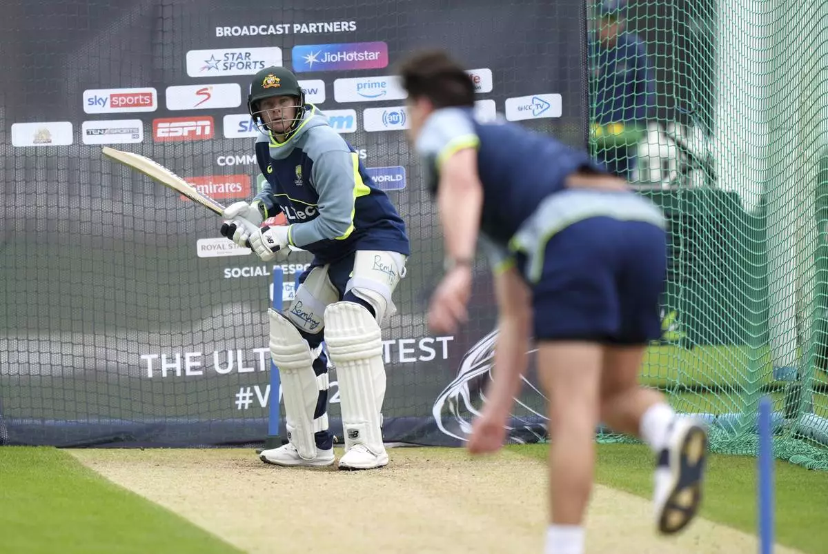 Australia players during a nets session at Lord's, London, Monday, June 9, 2025. (Ben Whitley/PA via AP)
