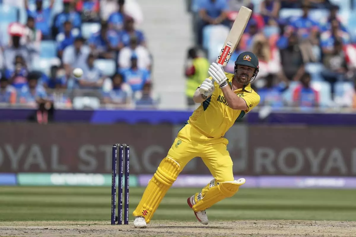 FILE - Australia's Travis Head plays a shot during the ICC Champions Trophy semifinal cricket match between India and Australia at Dubai International Cricket Stadium in Dubai, United Arab Emirates, Tuesday, March 4, 2025. (AP Photo/Altaf Qadri, File)