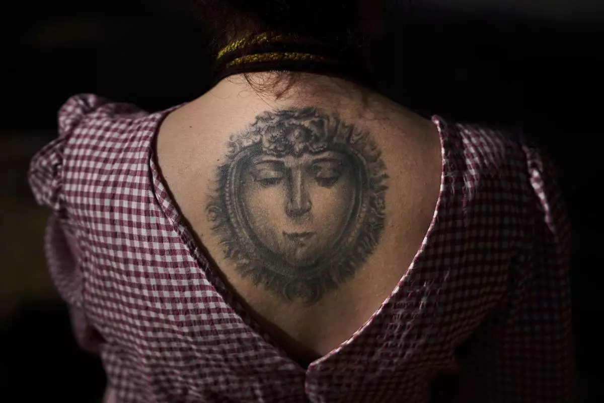 After a double mastectomy for breast cancer, Paloma Maria had a large Mary tattoo designed between her shoulders.