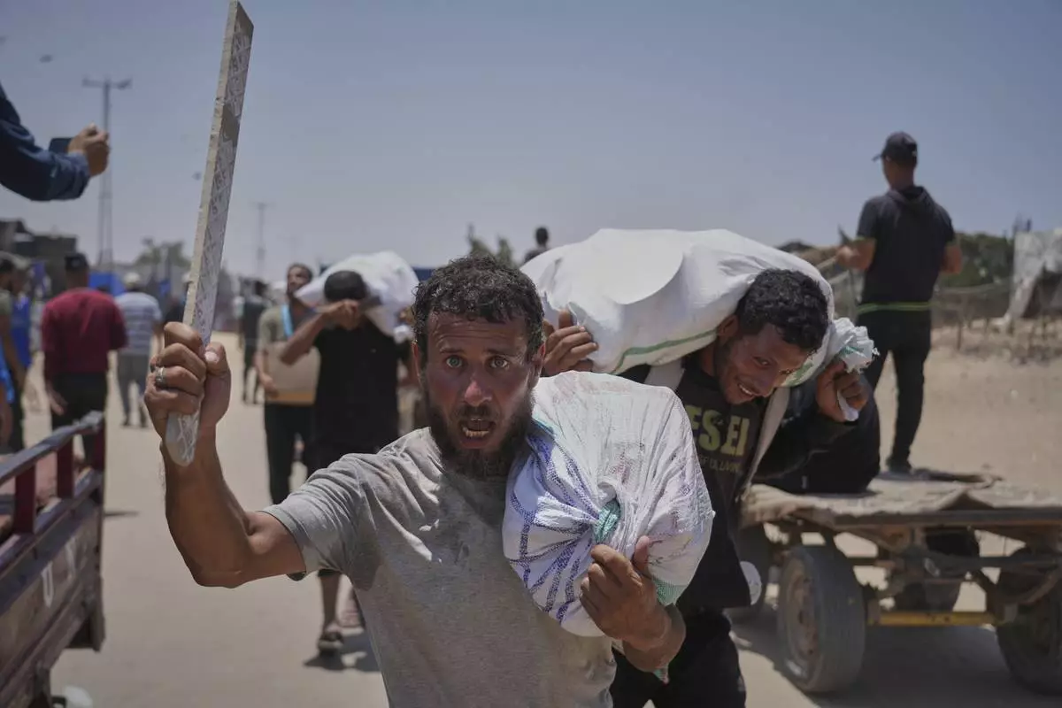 KHAN YOUNIS, Gaza Strip (AP) — Israeli forces and allied local gunmen fired toward a crowd heading to an Israeli- and U.S.-supported food distribution center in the Gaza Strip early Monday, Palestinians said. Gaza's Health Ministry and local hospitals said 14 people were killed.