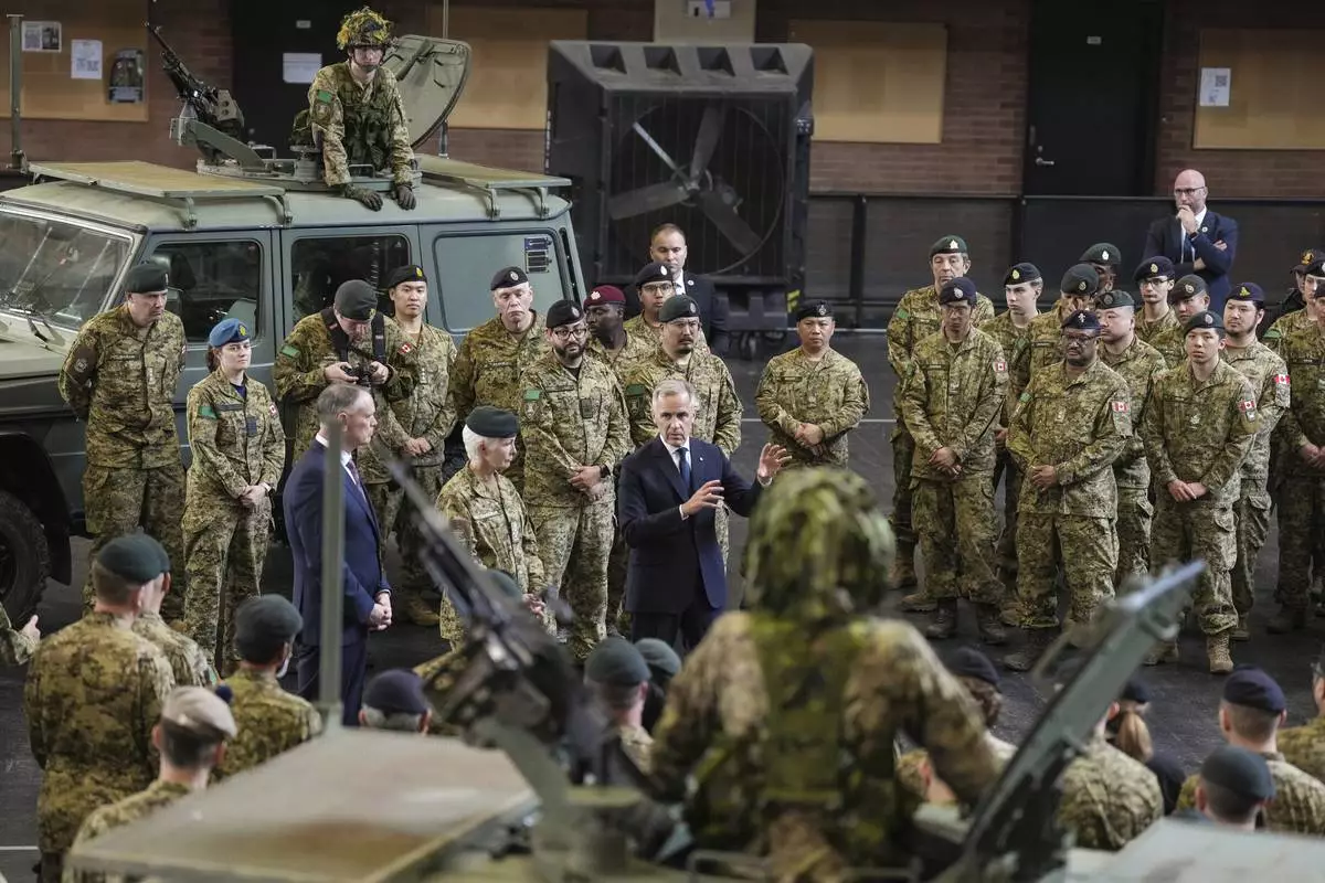 TORONTO (AP) — Canada will meet NATO's military spending guideline by early next year and diversify defense spending away from the United States, Prime Minister Mark Carney said Monday, asserting that Washington no longer plays a predominant role on the world stage.