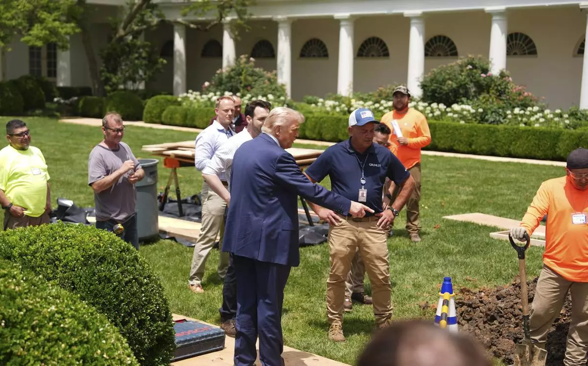 Reporters on Monday noticed that work had begun in the Rose Garden, just off the Oval Office on the south grounds, when they were taken out to the South Lawn to wait for Trump to return on the Marine One helicopter from an overnight at the Camp David presidential retreat in Maryland.